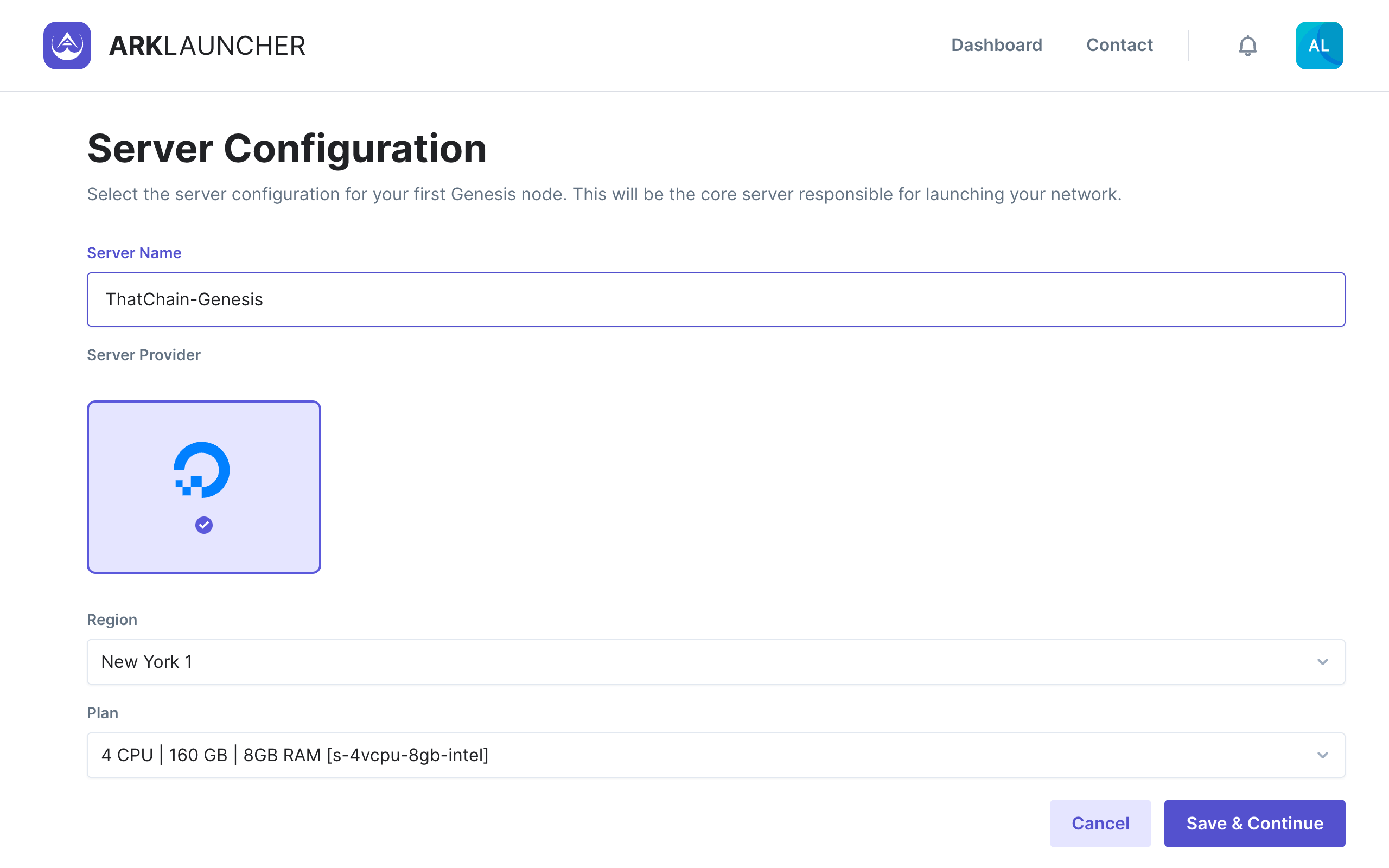 Having customized your blockchain and connected to a server provider, the next step is to select a server configuration for your network. While several options exist, we do recommend that you choose a configuration that offers optimal performance since this will allow you to scale your blockchain in the future.